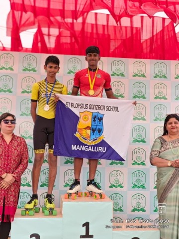 Yuvaraj D. Kunder, student of Class VIII A, has brought laurels to St. Aloysius Gonzaga School, Mangaluru, by winning two gold medals at the CBSE National-level Skating Championship. He secured this top position in both the 500m Rink Race and the One Lap Road Race. The championship was held from 13 to 16 November at HSV Global School, Gurugram, Haryana.