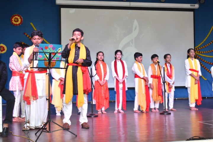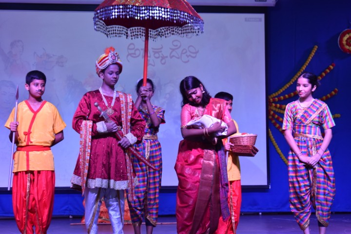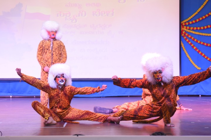 The celebration began with a lively “Huli Vesha” (Tiger Dance) performance, followed by a series of dance dramas and songs that reflected the cultural richness of the state. Dwithi H. L. of Class IV spoke on the importance of the day. The programme was compered by Avani, Yashik, Samarth, and Eshanvi of Class VII, with Avaneesh delivering the welcome address and Risha Kotyan proposing the vote of thanks. The event was coordinated by the Kannada language teachers.