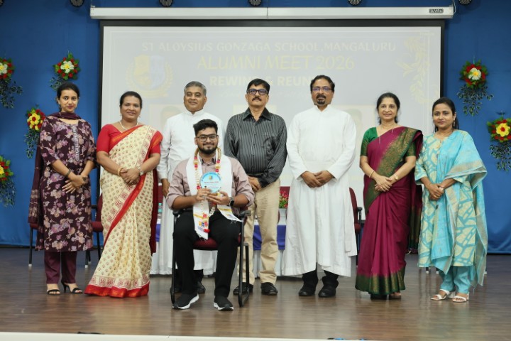 St. Aloysius Gonzaga School, Mangaluru, organised its Alumni Meet “Rewind and Reunite” on 28 March 2026. The meet began with a prayer song by the Teachers’ Choir, followed by the ceremonial lighting of the lamp by the dignitaries and batch representatives.